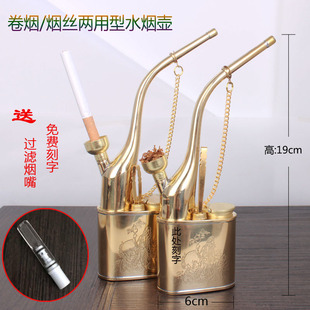 过滤两用水烟袋黄铜水烟斗水烟壶烟筒旱烟袋全铜两用创意纯铜大号老寿星 1