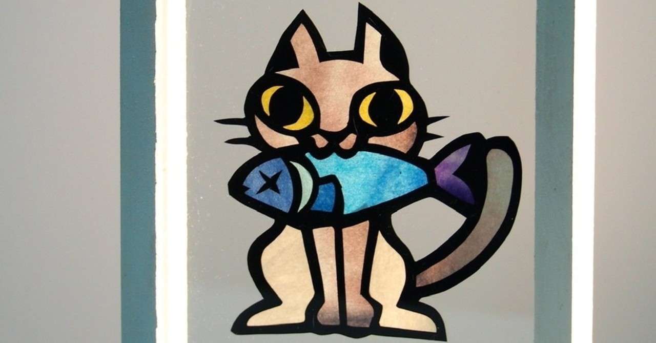 フリー図案no 059 魚をくわえたねこ の切り絵 華色切絵 平石智美のカラー切り絵を楽しむnote Note