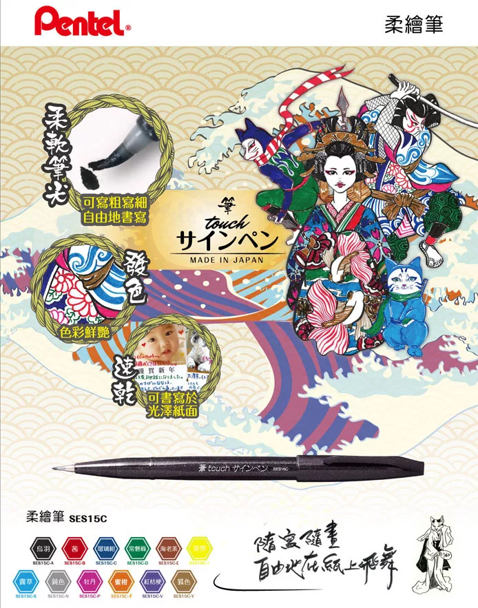 博客來 Pentel柔繪筆布筆袋套組 夏 魚戲花