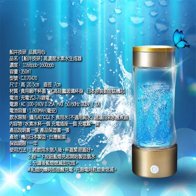 限時特價充電便攜富氫水杯日本技術水素水製造機活氫動力生成器電解負離子玻璃水杯 露天拍賣