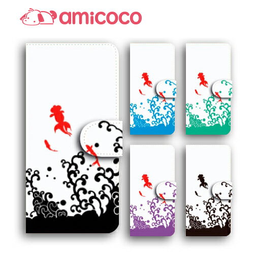 カメラ穴あり 人魚姫と魚たち柄 手帳型スマホケース 受注生産 ハンドメイドマーケット Minne