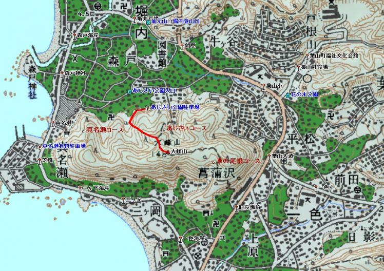 名山navi 登山ルート あじさい公園駐車場から大峰山のピストン