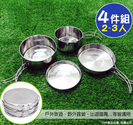 不鏽鋼野炊4件式套鍋組 2 3人 贈收納袋 野營套鍋登山鍋具戶外鍋具露營鍋組 樂遊遊戶外用品館 Rakuten樂天市場